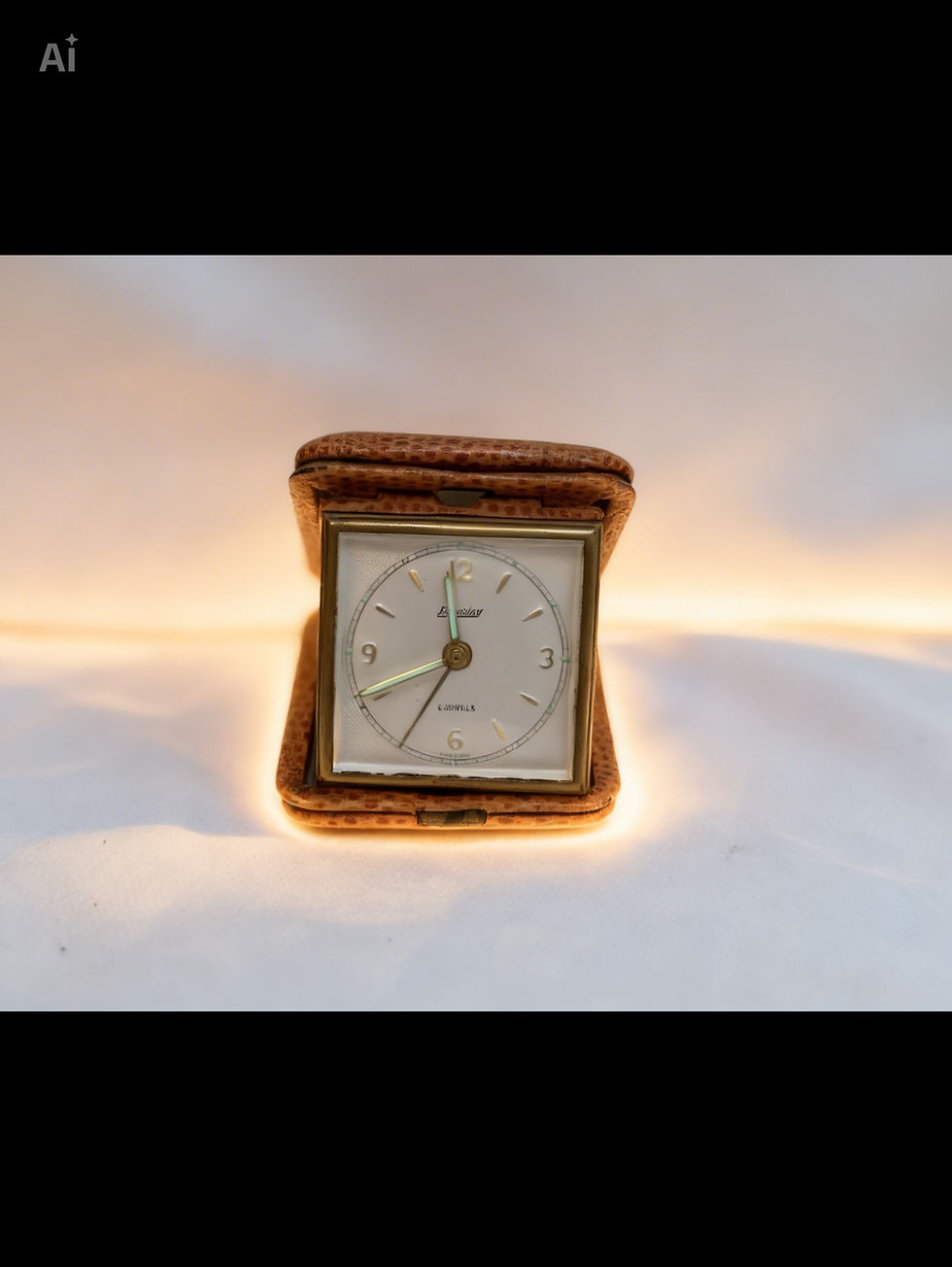 Antiker Europa Reisewecker – 7 Jewels – Braunes Struktur-Etui